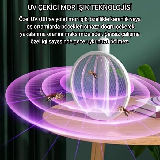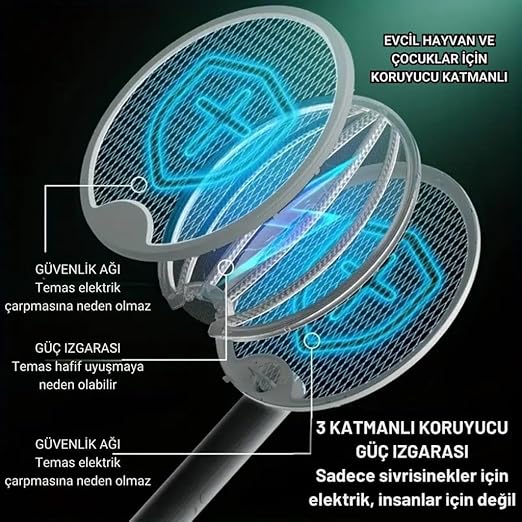 Katlanabilir Şarjlı 12000maH 300V 5 Katmanlı Uv Işıklı Elektrikli Sivrisinek Öldürücü Raket Sinek Öldürücü Sineksavar