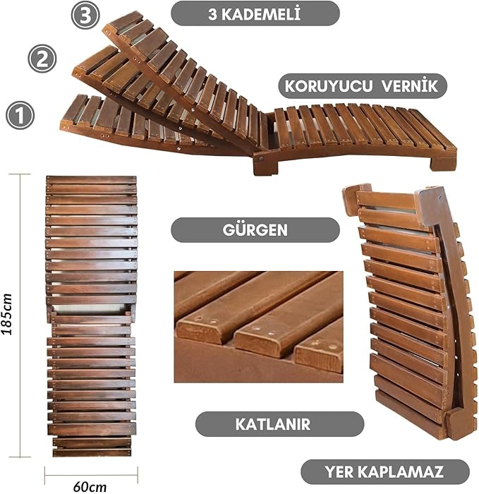 KATLANABİLİR YATAR ŞEZLONG 3 KADEME PLAJ YATAĞI MİNDER DAHİL (CEVİZ – GRİ)