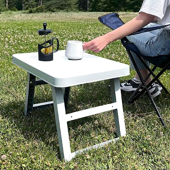 Katlanır Kamp Masası, Portatif Balkon ve Piknik Masası, Taşınabilir Sehpa – Mangal ve Plaj İçin (Beyaz)