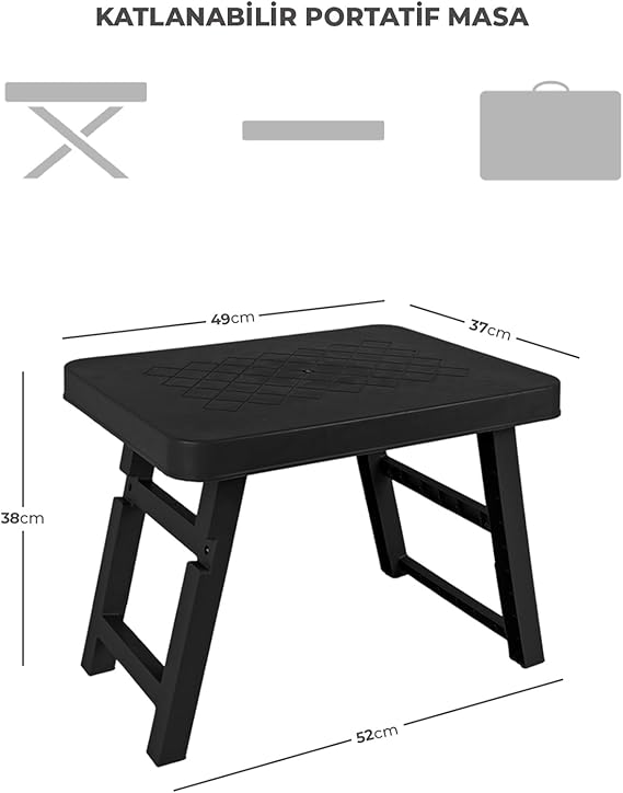 ÇOK YÖNLÜ KULLANIM : Kamp masası, laptop sehpası, çocuk çalışma masası gibi farklı amaçlarla kullanılabilir.