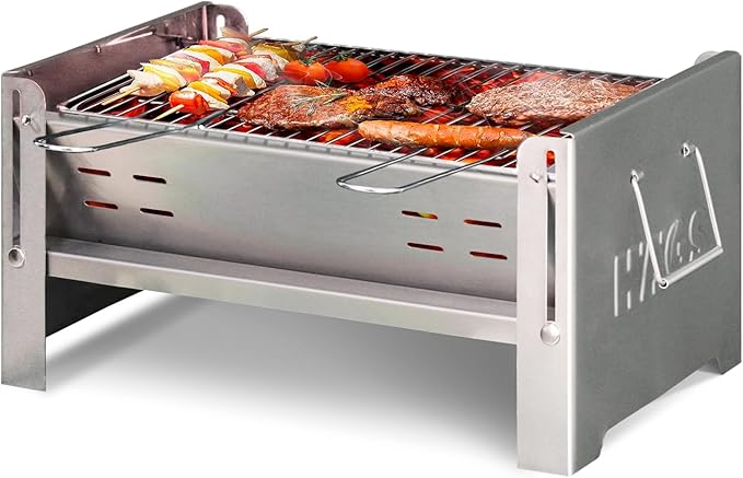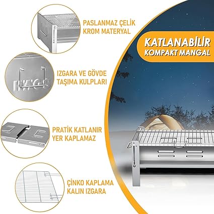 Katlanır Mangal, Paslanmaz Çelik, Barbekü Kömür Mangalı, Izgaralı, Portatif taşınabilir Pratik Mangal