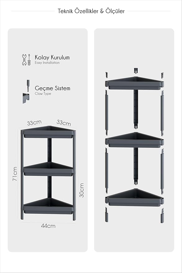 Çok Yönlü Kullanım: Sadece banyo ve mutfakta değil, balkon, ofis gibi birçok alanda da kullanılabilir. Saksı, kitap, dekorasyon ürünleri gibi çeşitli eşyaları düzenli bir şekilde saklamak için idealdir.