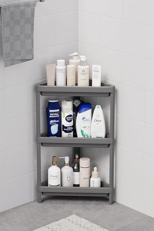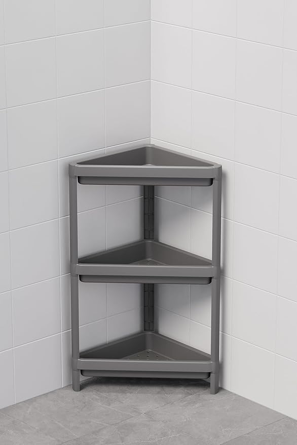 Katlı Üçgen Plastik Gri Banyo Mutfak Rafı MIT1061