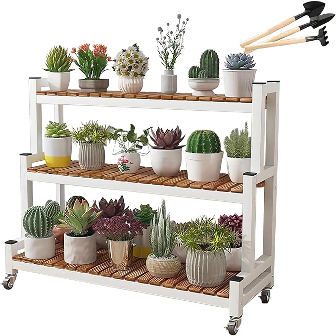 Katmanlı ve 3 Katmanlı Metal Saksı Tutacağı, Tekerlekler Yerden Tasarruflu İç Mekan/Dış Mekan Bitki Rafı Standı Ev ve Bahçe Dekoru için Şık Çiçek Teşhir