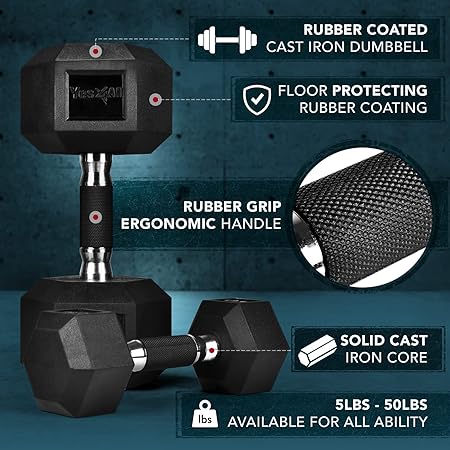 Seviyeniz için çeşitli seçenekler: Tek tek satılan 10, 15, 20, 25, 30, 35, 40, 45, 22,7 kg dahil geniş altıgen kauçuk dambıl çeşitlerimizden doğru kademeyi seçin