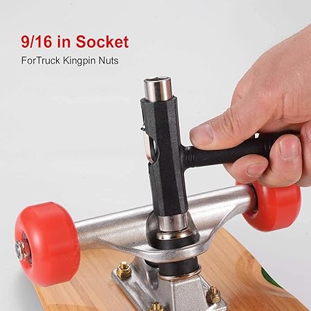 [ parça tasarım]: Kaykay aracı, kaykayı sıkmak veya onarmak için ihtiyacınız olan her şeyi sunar. 3 farklı boyutta priz (donanım 3/8, tekerlek 1/2, 9/16) ve üstten takılabilen kaydırılabilir yıldız anahtar içerir.