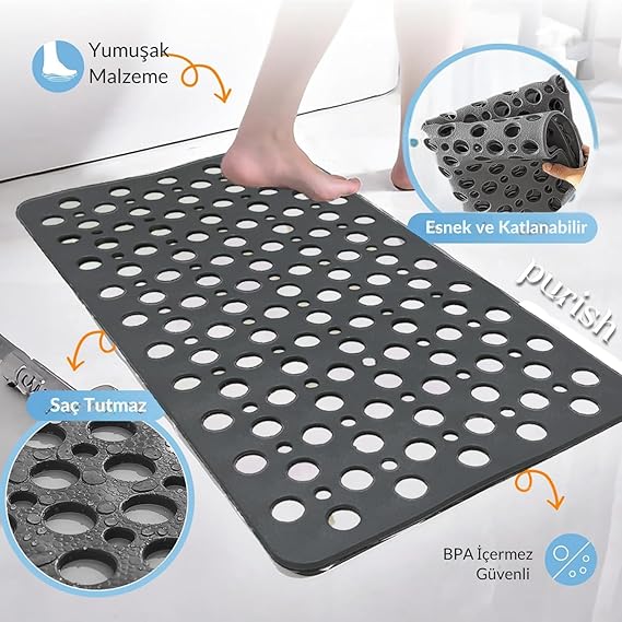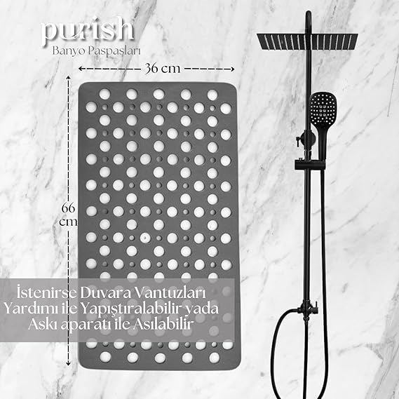 ✅ Güvenli kullanım: Güçlü vantuzları ile ıslak yüzeylere sıkıca tutunur, kaymaları önler.
