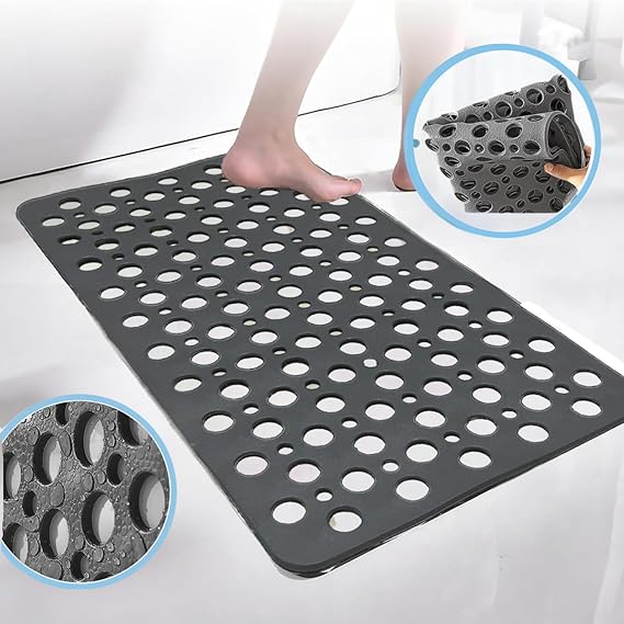 | Kaymaz Banyo Paspası | Antrasit Gri | 66x36cm – Dikdörtgen Duş Matı, Küvet Paspası | Güçlü Vantuzlu, Su Tahliyeli, Yumuşak | Makinede Yıkanabilir | Kaydırmaz Zemin Matı (Antrasit Gri)