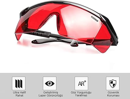 KBL1R Kırmızı Çizgi Lazer İzleme ve Epilasyon Gözlüğü, Kırmızı/Siyah