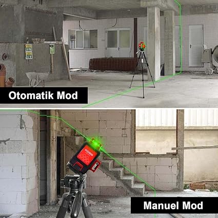 360 derece açı ile üç adet lazer ışınları sayesinde alçıpan bölme odalar ofisler makine kurulumları fabrika çatıları fayans işçiliği gibi dekoratif işlemlerin kullanılmasında su terazisi ve hizalama ipi kullanmadan hızlı ve pratik şekilde çözüm oluşturmanızı sağlar