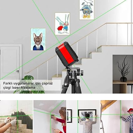 Bir adet yatay bir adet dikey çizgi lazer ve 2 noktalı Şakül ile oluşan artı lazer hattı ile son derece kullanışlı yeşil lazer hizalama