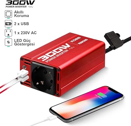 Aracınızın çakmaklık girişine veya direkt akü kutup başına bağlayarak aracınızdaki 12Volt DC Akımı 220Volt elektriğe dönüştürür, bu sayede 220Volt/300Watt elektrik enerjisi ile bilgisayar, cep telefonu, tablet ve diğer tüm elektronik cihazlarınızı şarj etmenizi ve kullanmanızı sağlar.