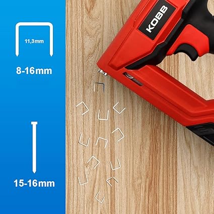 Ağır hizmet tipi 8, 10, 12, 14 ve 16 mm olmak üzere 5 farklı ölçüde zımba teli ve 16 mm’e kadar ağır hizmet tipi kesik başlı çivi çakma özelliği sayesinde profesyonel kullanım imkanı sağlar