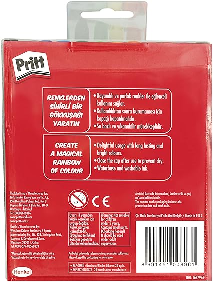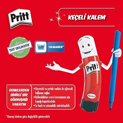 Ambalaj içeriği – Pritt Keçeli Kalemler, yaratıcı aktiviteler için su bazlı zararsız boya, yazım, çizim ve boyama sonrası silinebilir renkli kalem, 12 Renkli Paket