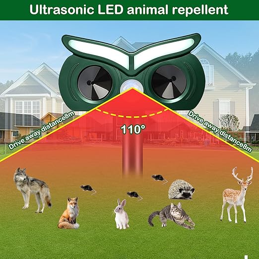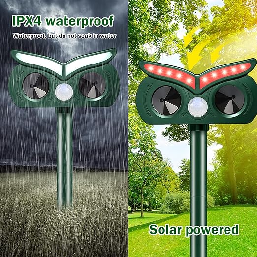 【Güneş enerjisiyle şarj ve su geçirmez】Solar hayvan kovucu, ürünü etkili bir şekilde şarj edebilen 1200 mA güneş paneli ile donatılmıştır. Açık havada, ürünün bir prize ihtiyaç duyması konusunda endişelenmenize gerek yok. Su geçirmez IPX4 tasarımı ile tüm hava koşullarında çalışabilir.