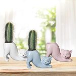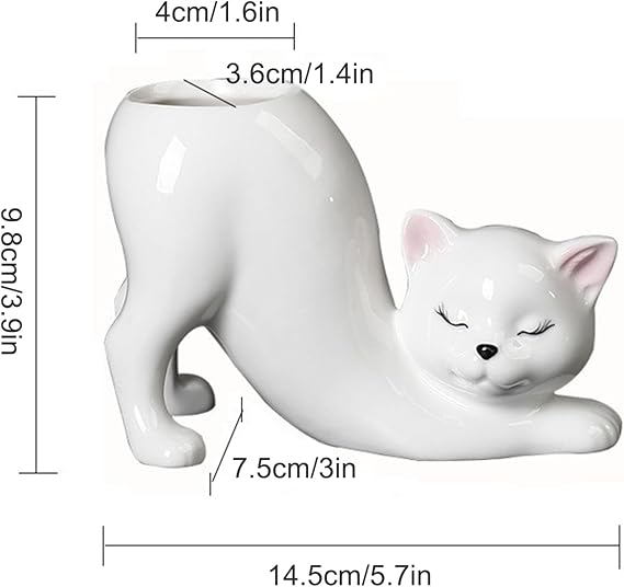 Kedi Seramik Saksı, Kedi Ekici Hayvan Etli Saksılar, Seramik Kedi Şekli Ekici Saksı, Ev Ofis Masası Dekor için Dekoratif Seramik Çiçek Ekici Pot(Beyaz)