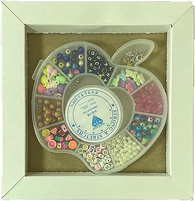 SET İÇERİĞİ: Renkli boncuklar, parlak süsler ve çeşitli dekoratif malzemelerle dolu elma şeklinde düzenlenmiş bölmeli kutu