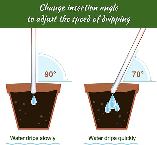 Mini Sulama Sistemi: Suyun boşaltma hızı, saksıdaki toprak türü, bitkinin ihtiyaç duyduğu su miktarı, ortam sıcaklığı vb. dahil olmak üzere çeşitli faktörlere bağlıdır. Boşaltma oranını ayarlamak için kesici uç açısını değiştirin ve beklenenden daha hızlı boşalmasını önlemek için sulandırıcıyı kullanmadan önce bitkiyi iyice sulayın. Toplam Uzunluk: 10.2 “, Su Haznesi Depolama Kapasitesi: 95mL.