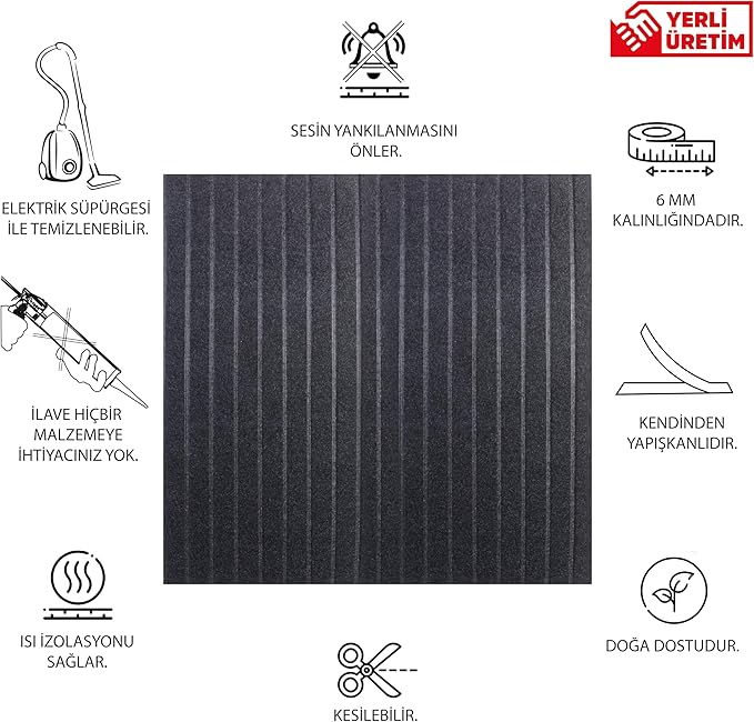 Dekoratif ve Akustik Keçe Paneller KENDİN YAP bir üründür.; Ustaya ihtiyaç duymadan , yüzeyleri kırıp dökmeden, başkaca hiçbir yüzey düzeltme işlemine gerek kalmadan duvar, tavan ve zemine arka yüzdeki bandın koruma kağıdını sıyırarak kolayca yapıştırılır.; İhtiyaç duyarsanız söküp başka mekanlarda ve yüzeylerde TEKRAR kullanabilirsiniz.