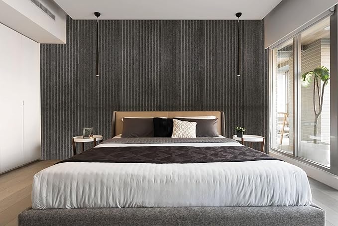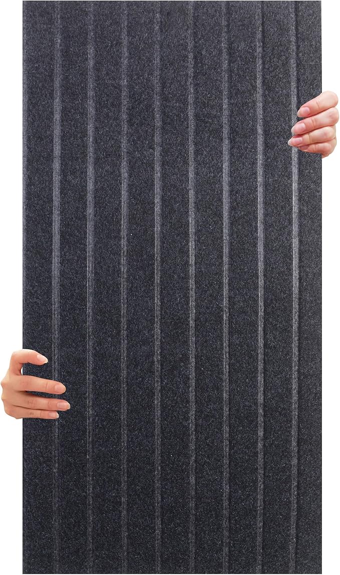 Kendinden Yapışkanlı Akustik Panel, Duvar Ses Yalıtım Paneli, Ses Emici Lambiri Desenli Dekoratif Keçe Panel 45×90 Cm / 2 Adet / 0,81 M² Antrasit