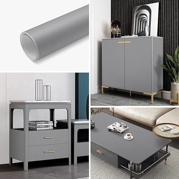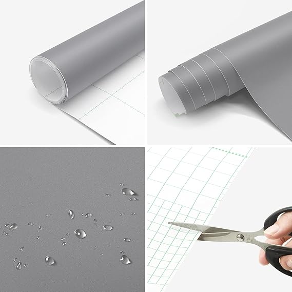 Kendinden yapışkanlı folyo, açık gri, mat, yapışkan folyo, PVC folyo, kalınlaştırılmış mutfak dolabı, çıkartma, mobilya, mutfak, komodin, dolap için, su geçirmez, vinil, dekoratif folyo, mobilya