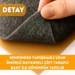 Kendinden Yapışkanlı: Boydan boya kendinden yapışkanlı kaliteli ve dayanıklı çift taraflı bant uygulanarak gönderim sağlanır, bu bant ile her türlü araç zemini, kapısı, bagajı, tavanı gibi otomobilinizde düşünebileceğiniz her türlü alana uygulayabileceğiniz şekildedir