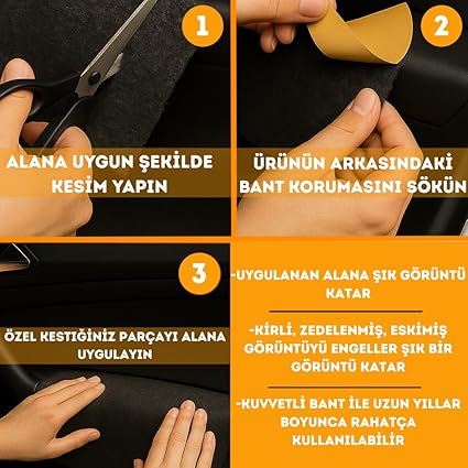 Kesilebilir: Kolayca istenilen yüzeye (örnek: bagaj, kapı, taban, zemin) gibi kaplama yapmak istediğiniz yerlere uygun şekilde kesilerek uygulanabilir