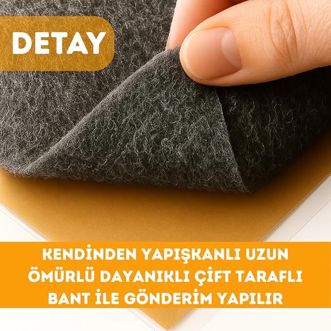 Kendinden Yapışkanlı: Boydan boya kendinden yapışkanlı kaliteli ve dayanıklı çift taraflı bant uygulanarak gönderim sağlanır, bu bant ile her türlü araç zemini, kapısı, bagajı, tavanı gibi otomobilinizde düşünebileceğiniz her türlü alana uygulayabileceğiniz şekildedir