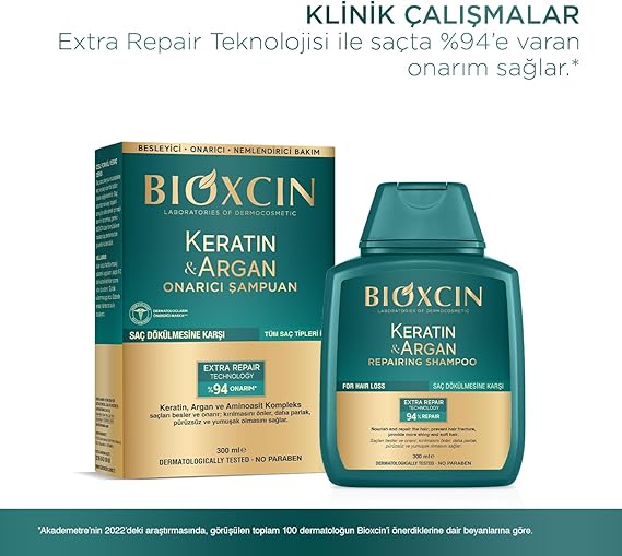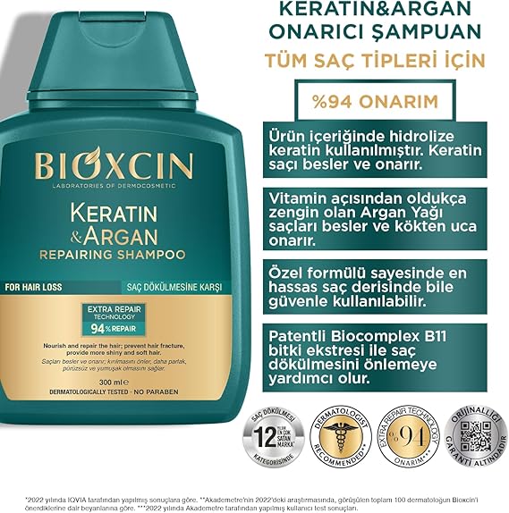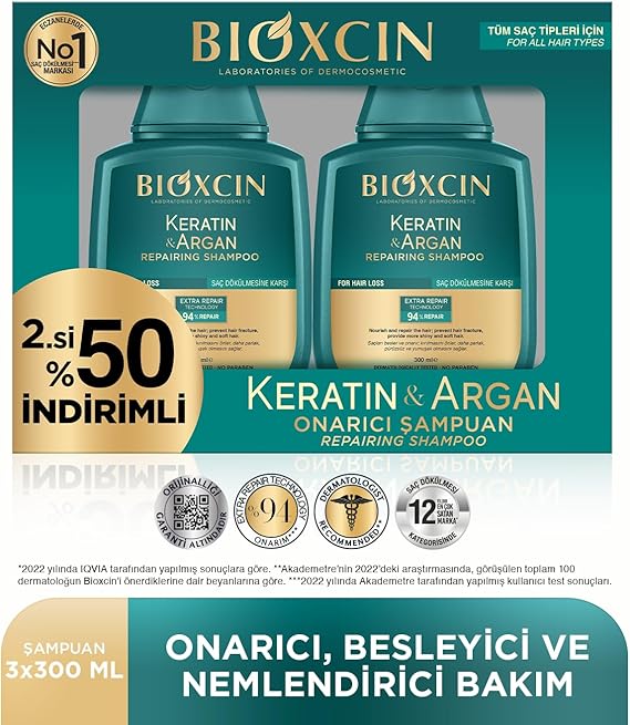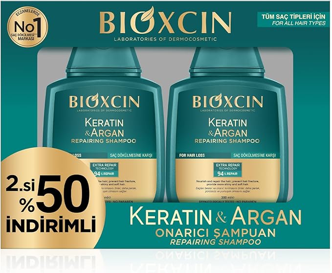 Keratin & Argan Onarıcı Şampuan | 2 x 300 ml | Yıpranmış ve Hasar Görmüş Saçlar İçin | Hidrolize Keratin + Argan Yağı + BioComplex B11