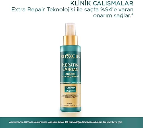 Keratin & Argan Onarıcı Sıvı Saç Kremi – Hidrolize Keratin, Argan Yağı ve BioComplex B11 İçeren Durulanmayan Saç Bakım Spreyi – 150 ml – Yıpranmış Saçlar İçin