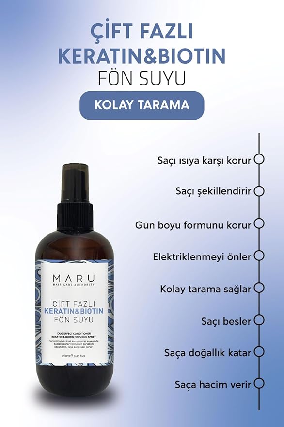 Yoğunlaştırılmış keratin içeren onarıcı ve pürüzsüzleştirici, saç bakım spreyi özel formülü ile aşırı yıpranmış, kuru, mat ve cansız saçları hedef alır.