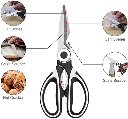 ÇOK FONKSİYONLU Keskin Makas: Mutfak makası, yüksek kaliteli paslanmaz çelikten, korozyona dayanıklı, son derece keskin ve dayanıklıdır.