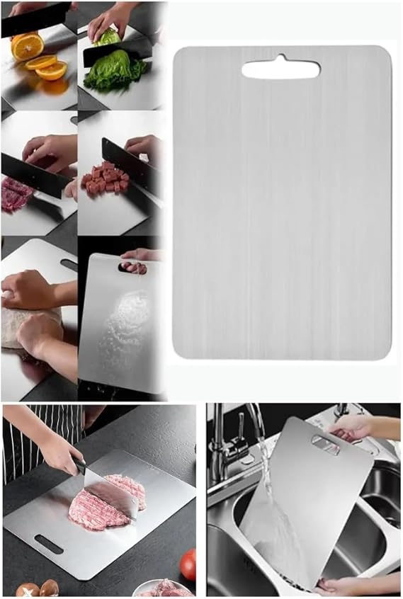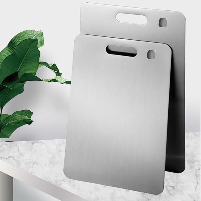 Kesme Tahtası 2’li Set 304 Paslanmaz Çelik Gıda Temasına Uygun Hijyenik ve Dayanıklı Antibakteriyel 1,6 mm Kesim Panosu Levhası Cam Kesme Tahtası KALİTELİ