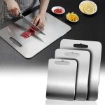 Kesme Tahtası 3’lü Set Paslanmaz Çelik Gıda Temasına Uygun Hijyenik ve Dayanıklı Antibakteriyel 0,7 mm Kesim Panosu Levhası Cam Kesme Tahtası