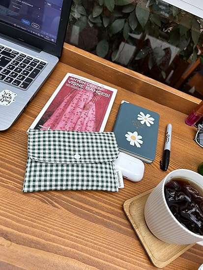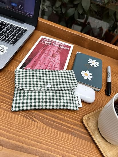 Keten Yıkanabilir Çıtçıt Detaylı Kadınlar için Ped Çantası,Mini Kozmetik Makyaj Çantası,Ped Kesesi,Cüzdan,Kartlık (koyu yeşil)