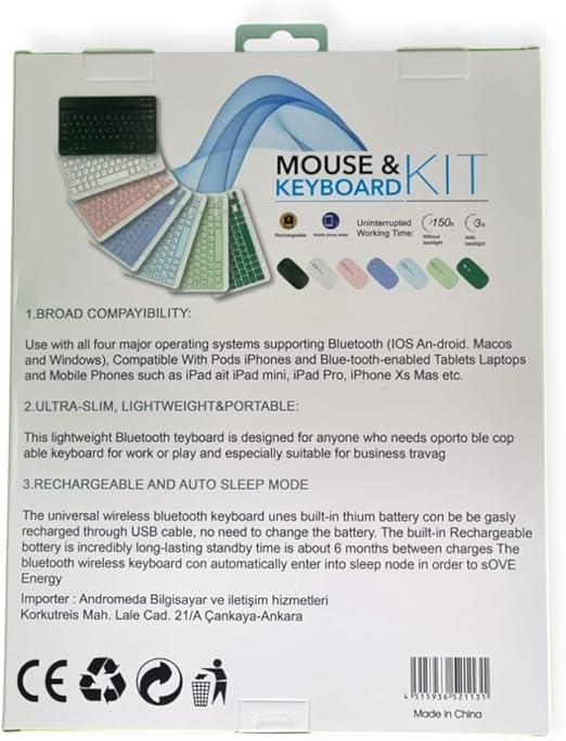 KEY 01 KABLOSUZ BLUETOOTH WİRELESS TÜMÜ TÜRKÇE KARAKTERLİ i ü ğ harfleri bulunur KLAVYE MOUSE SETİ (BEYAZ)