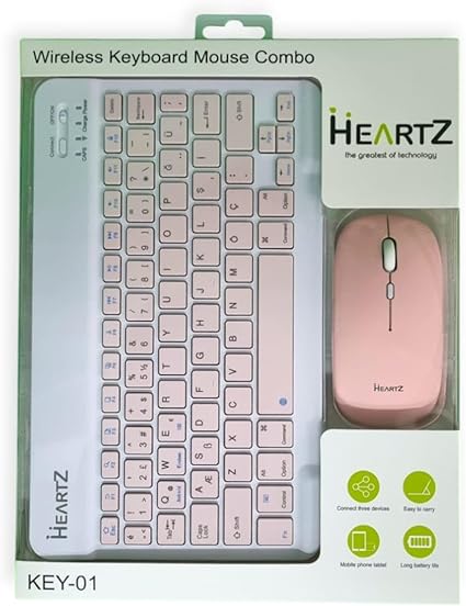 KEY 01 KABLOSUZ BLUETOOTH WİRELESS TÜMÜ TÜRKÇE KARAKTERLİ i ü ğ harfleri bulunur KLAVYE MOUSE SETİ (TOZ PEMBE)