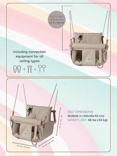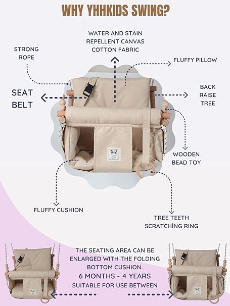 Ekstra Rahat Yapıldı: Çocuklarımızın salıncakları için ahşap ve dübel kullanıyoruz. Asma sandalye, yumuşak döşemelik kumaşa ve ekstra konfor için birleştirilebilen cilt dostu polyester dolgulu iki yastığa sahiptir.