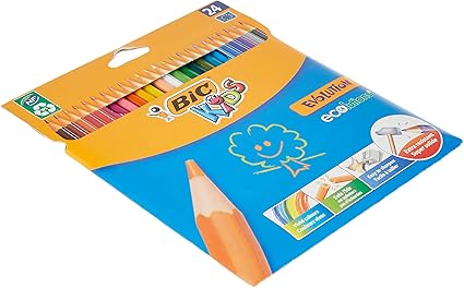 BIC Kids ürün serisinden 24 adet neşeli, çevreyle dost renkli kuru boya kalemi içerir