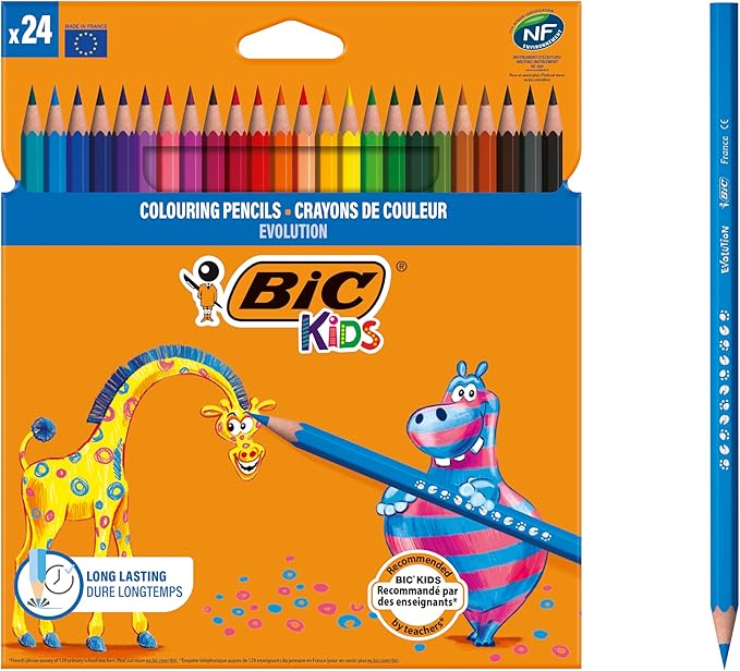 Dayanıklı, kalemtıraşla açması kolay ve yoğun pigmentli uca sahip BIC Kids kuru boya kalemleri, özel esnek yapısı sayesinde yere düşse bile içi kırılmaz