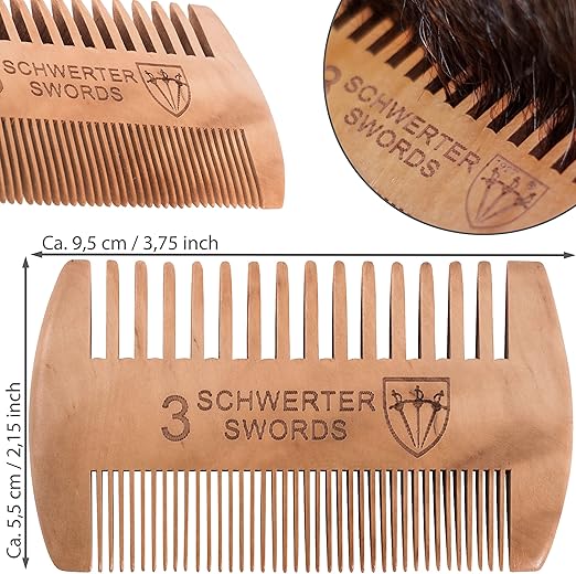KILIÇ – Her sakal tipi için iki farklı diş ile zorlu ve günlük sakal bakımı için sakal tarağı ‘Barba’, sağlam şeftali ağacından marka kalitesi (8688)