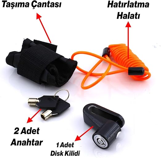 Kilidi Motosiklet Bisiklet Disk Kilit Hatırlatma Halatlı Taşıma Çantalı Hırsız Önleme Güvenlik