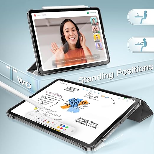 Manyetik akıllı kapak otomatik uyku/uyanma fonksiyonunu destekler. Üçe katlanan ön kapak iPad görüntüleme ve yazma için iki ayakta pozisyonda destekleyebilir