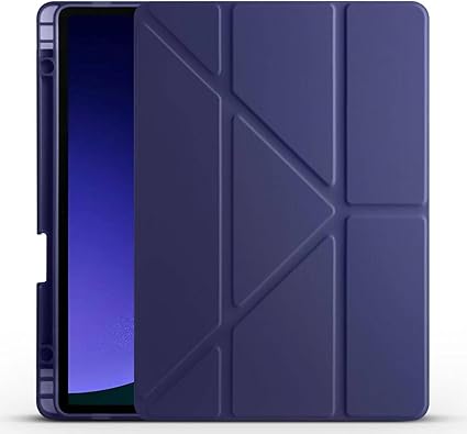 Kılıf için Samsung Galaxy Tab S10 FE Plus/S10 FE+ 13.1-Inçi le Uyumlu Kılıf Üçgen Tri Folding Kalem Bölmeli Standlı Kılıfı (Lacivert)