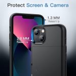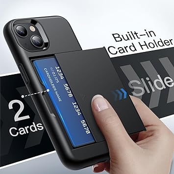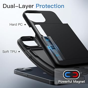 Kılıf ile Kart Tutucu için iPhone 13 6,1 lnç, İki Katmanlı Darbeye Dayanıklı Koruyucu Kapağı, Sürgülü Gizli Yuvası (Siyah)
