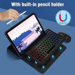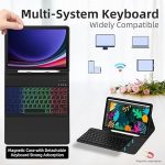 Kılıfı, Mor Klavye Kılıfı, Samsung Galaxy Tab A7 10,4 inç 2020 (SM-T500/T505/T507), 7 Renk Arkadan Aydınlatmalı, Manyetik Çıkarılabilir Kablosuz Klavye