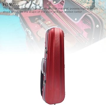 Kılıfı, Taşınabilir Karbon Fiber Hardshell 4/4 Tam Boyutlu Keman Kilidi Kırmızı