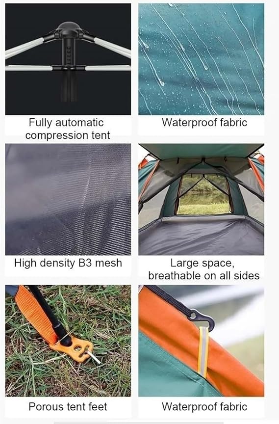 Kişilik Tam Otomatik Kamp Çadırı Kolay Kurulum Sineklikli 300X300X170cm