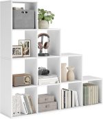 Kitaplık, merdivenler, 10 küp gözü, ahşap sergi rafı, bağımsız raf, oda bölücü, beyaz LBC10WTV1