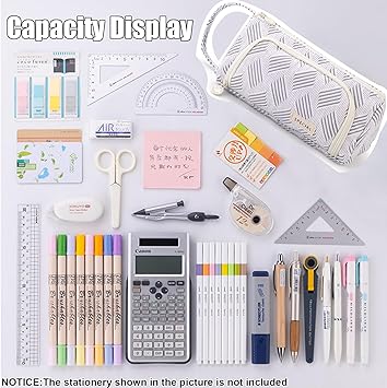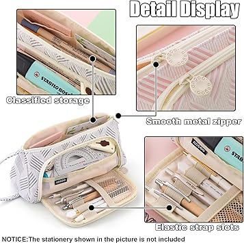Hafif ve büyük kapasiteli: ONCCI Kalem kutusu, bir öğrencinin ihtiyaç duyduğu 60 kalem ve diğer şeyler için yer sunar. Ana bölme yeterli alan sunar ve diğer iki bölme kalem halkaları, elastik file cepler ve silgi, ataş, makas vb. gibi küçük eşyalar için iç ceplere sahiptir.
